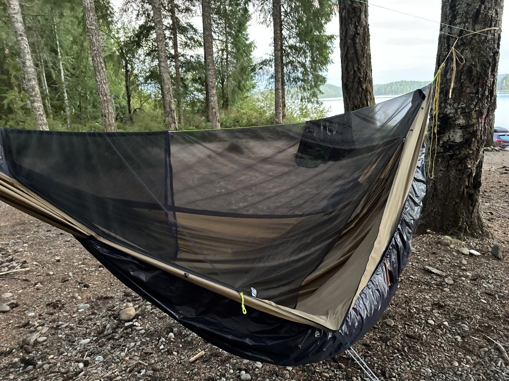 - has a venting zipper at the head end to cool off the hammock in the heat.